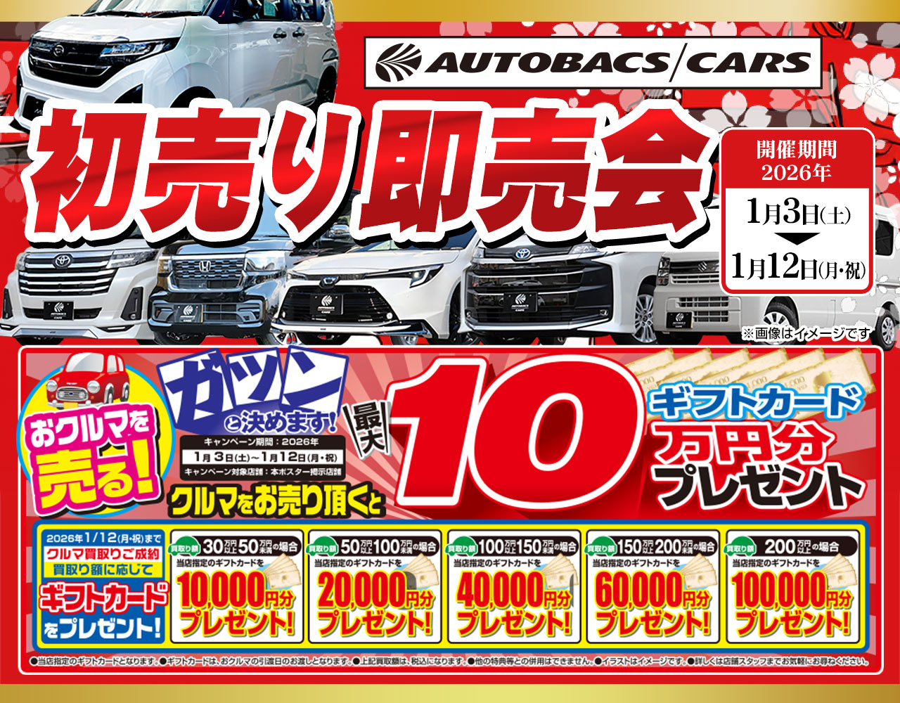 期間中は、おクルマ購入応援として購入金額に応じた特典や、オートバックスオートローンの金利特典、